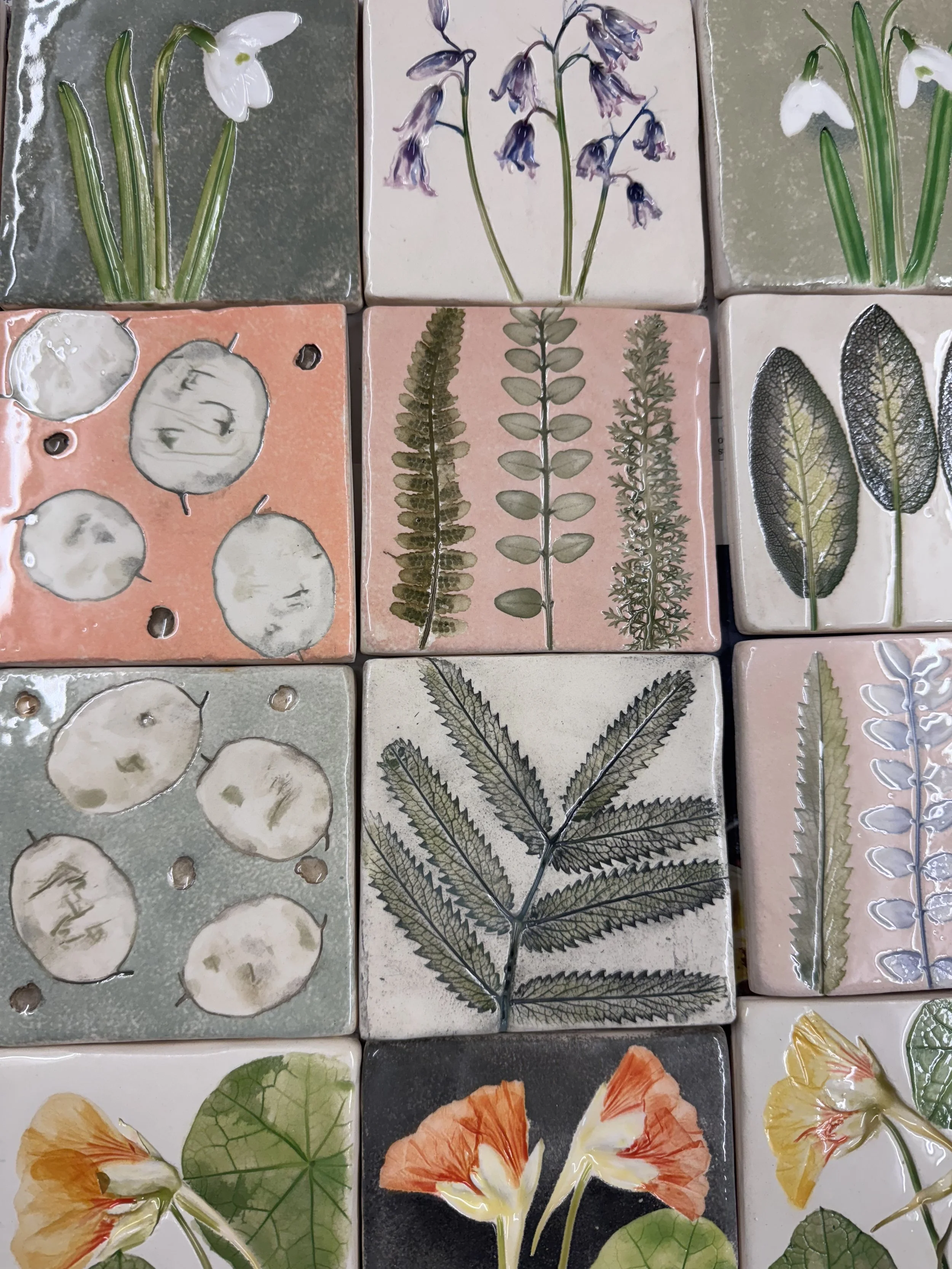 Over the years, Sue has curated a collection of popular plant species as they are flowering. Each tile is created is unique and seasonal.